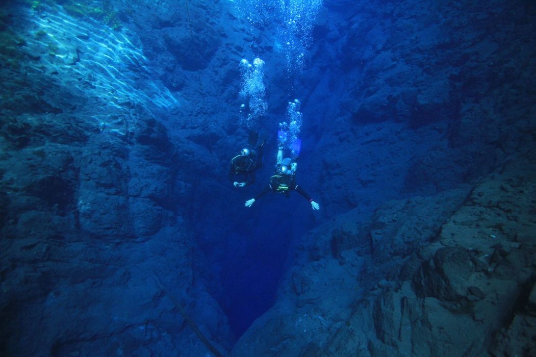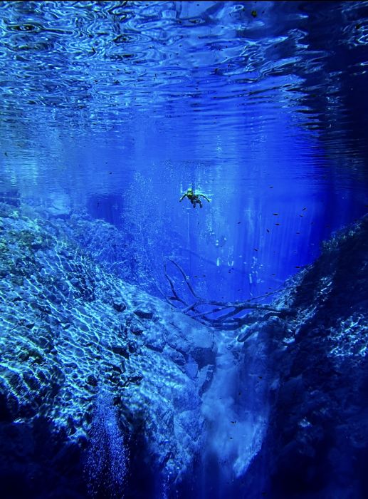 A sensação que se tem ao flutuar em águas tão transparentes sobre um abismo é de se estar voando, como se você estivesse solto no ar.